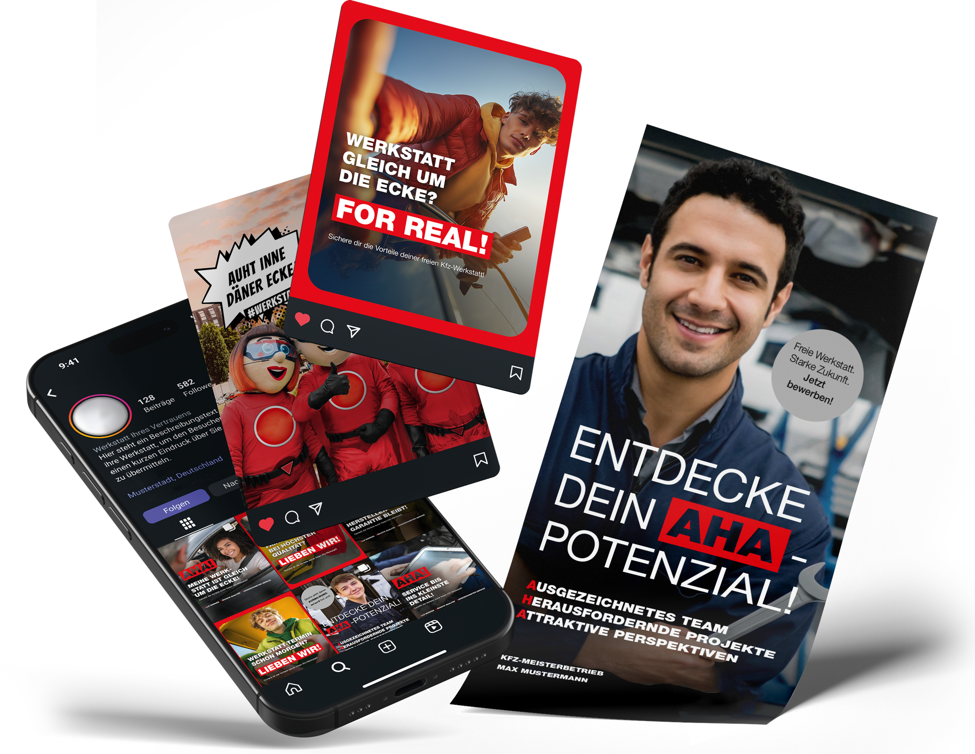 Damit deine Kommunikation zu deinem Stil und deiner Zielgruppe passt, kannst du aus drei Werkstatt-Kampagnen wählen. Ergänzt wird das Paket durch eine digitale Kundenkarte zur einfachen Kundenbindung und gebrandete Give-aways (wahlweise Kugelschreiber, Feuerzeuge oder Gummibärchen) im Gesamtwert von 100 Euro.